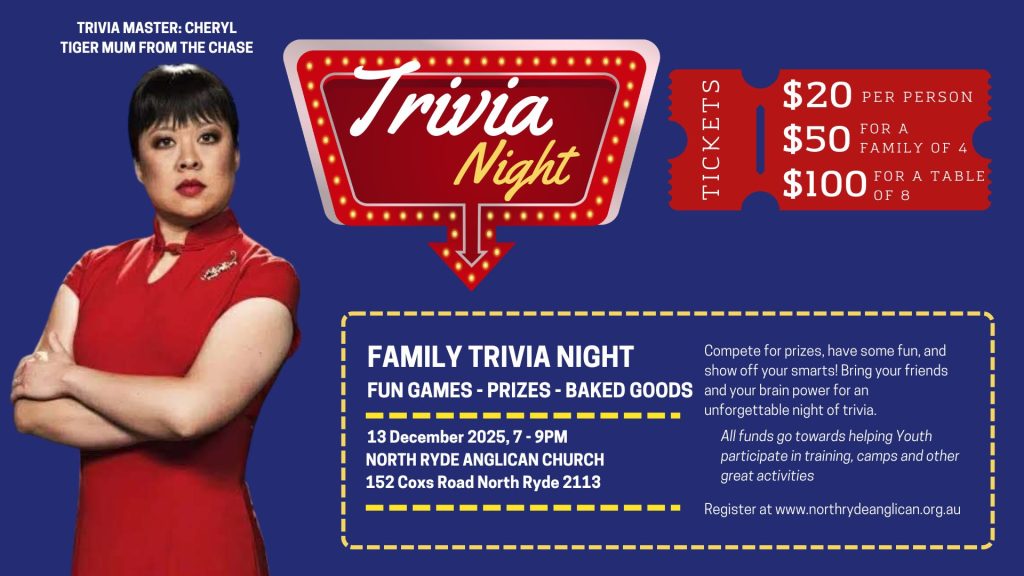 5pm service features our young adults band. We often share a meal after the service - either onsite or we vist Top Ryde or Macquarie Shopping centre.
